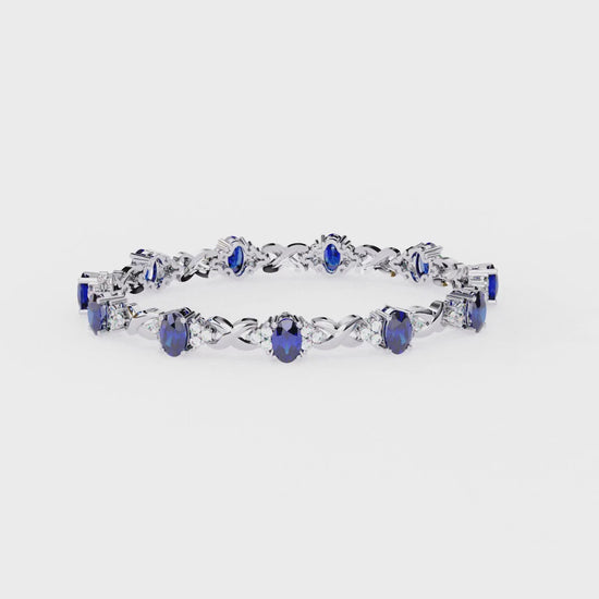 Elegant 5.74 Carat Oval‑Cut Blue Sapphire Tennis Bracelet with Diamond Accents,14k / 18kGold